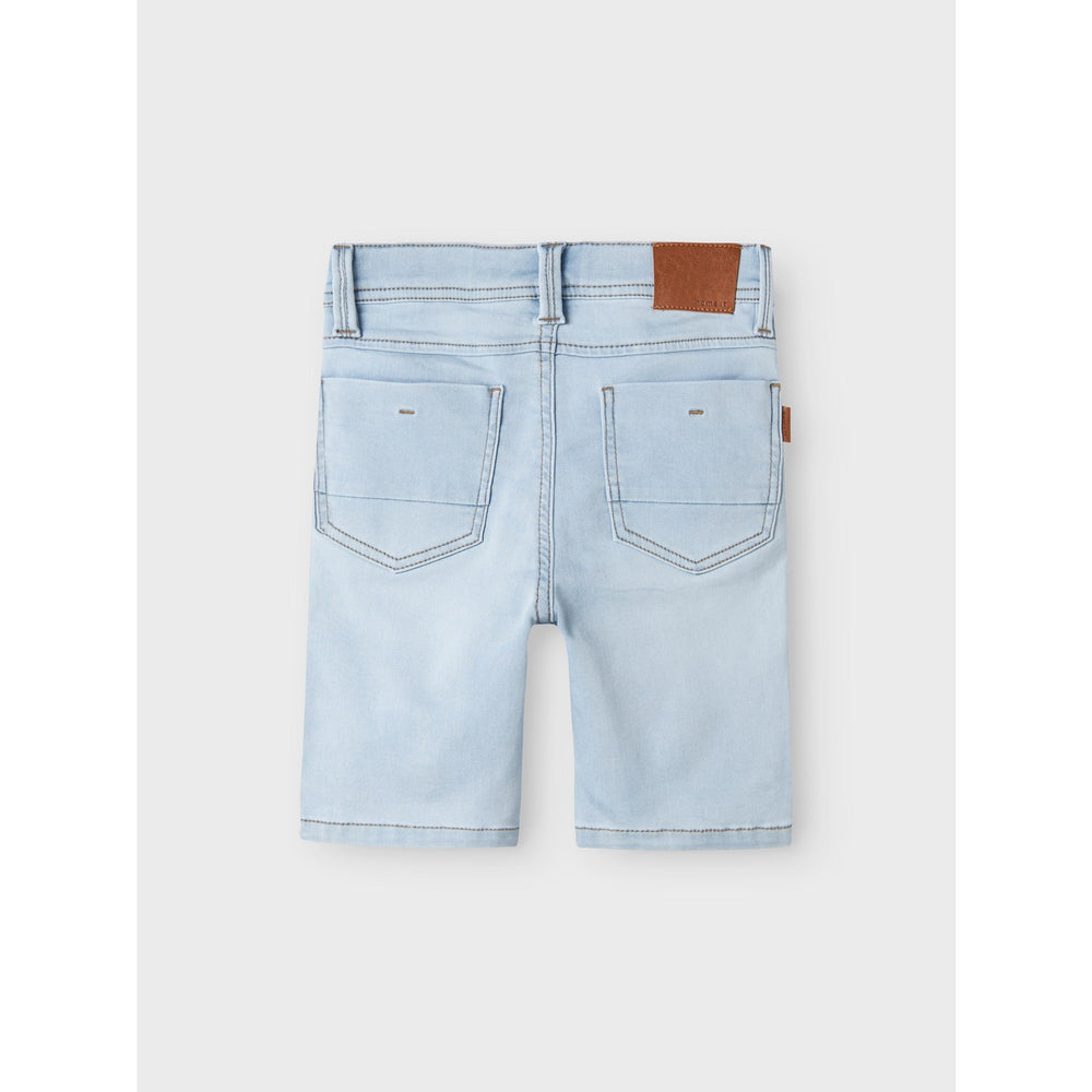 Introduce your little one to the Name It Light Blue Denim Theo Denim Shorts Noos, tailored perfectly for summer fun. Crafted from durable denim, these shorts are designed to provide both style and comfort. Featuring a classic hook button and zip fly fastening and an adjustable waist, they ensure a perfect fit for growing kids. The light blue color and unique used-effect finish add a touch of character to any outfit. Ideal for both active play and casual days, these xslim fit shorts are a wardrobe essential for the sunny season.