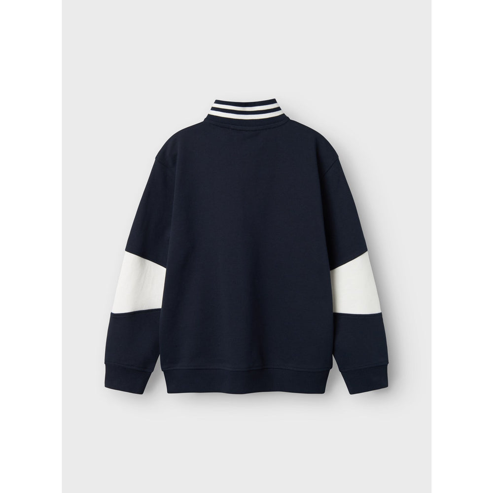 Introduce your child to the ultimate blend of style and comfort with the Name It Navy Blazer Beliam Regular Sweatshirt. Crafted from unbrushed sweat fabric, this top provides a smooth exterior and a looped interior for a soft touch against the skin. Featuring a chic mock neck and secure zip fastening, it's designed for easy wear and versatile style. The long sleeves and ribbed cuffs ensure a snug fit, while the regular fit maintains freedom of movement. Ideal for both school days and weekend outings, this durable and easy-care navy sweatshirt will keep your little one looking sharp and feeling comfortable.