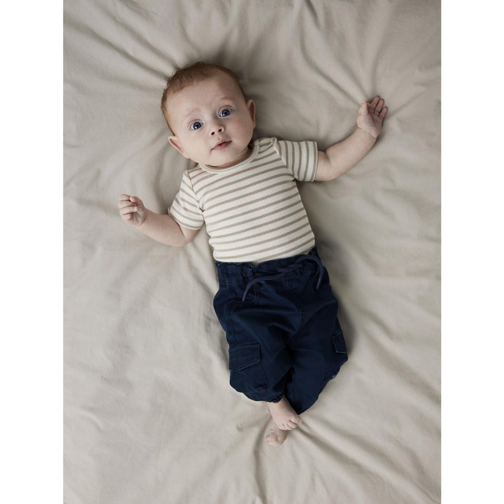 Introduce your little one to the stylish and comfortable Name It Navy Blazer Ben Cargo Twill Pants Noos. Crafted from durable twill fabric, these pants boast a distinctive diagonal weave ensuring both durability and a timeless appeal. Featuring a versatile navy hue accented with distinctive cargo pockets and non-functional front pockets, these trousers are as functional as they are fashionable. The elasticated hems and adjustable waist cater to growing kids, offering a perfect round fit that's spacious through the hips and legs. Ideal for everyday wear, these pants provide ease of movement and are easy to care for, making them a practical choice for busy parents. Perfect for various occasions, they offer a blend of coziness and chic style that will keep your child looking great and feeling comfortable all day long. Keep in mind the safety warning to keep these trousers away from fire. Enjoy how these cargo pants combine fashion with functionality, making them a must-have for your child’s wardrobe.