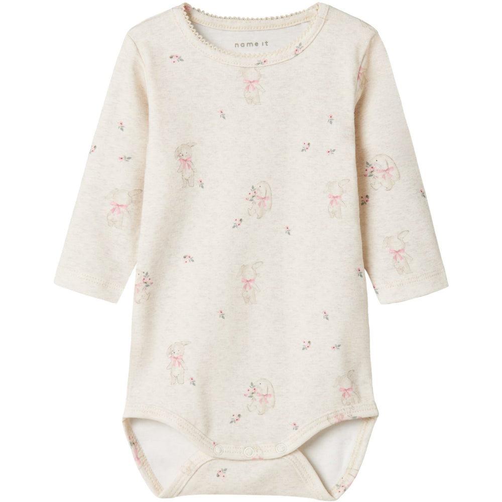Introducing the Name It Peyote Melange Hallo Body, an essential addition to your little one's collection! This bodysuit is crafted from soft rib knit material featuring a vertical stripe pattern and excellent elasticity, ensuring a snug yet comfortable fit. The classic round neck and long sleeves offer timeless style and warmth, ideal for year-round wear. Decked in a charming all-over print and equipped with convenient press stud fastenings for easy changing, it's as practical as it is adorable. Plus, always remember to keep this garment away from fire for safety!