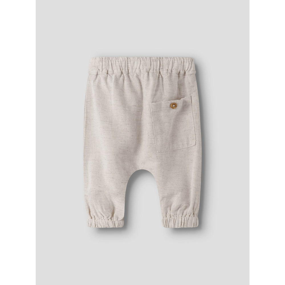 Introducing the Name It Peyote Melange Nbmfaher Pants Ff, the quintessential choice for stylish and comfortable children's wear. Crafted from chambray, a soft, lightweight, two-colored woven fabric, these trousers combine durability with a classic aesthetic. The regular fit and adjustable waist ensure a perfect fit for growing kids, while the elasticated hems add both comfort and ease of movement. Ideal for everyday wear, these trousers are a must-have for any child's wardrobe, ensuring they stay comfortable and chic throughout their adventures. Fit: Regular Materials: 50% Viscose LENZING™ECOVERO™, 35% Cotton, 15% Linen