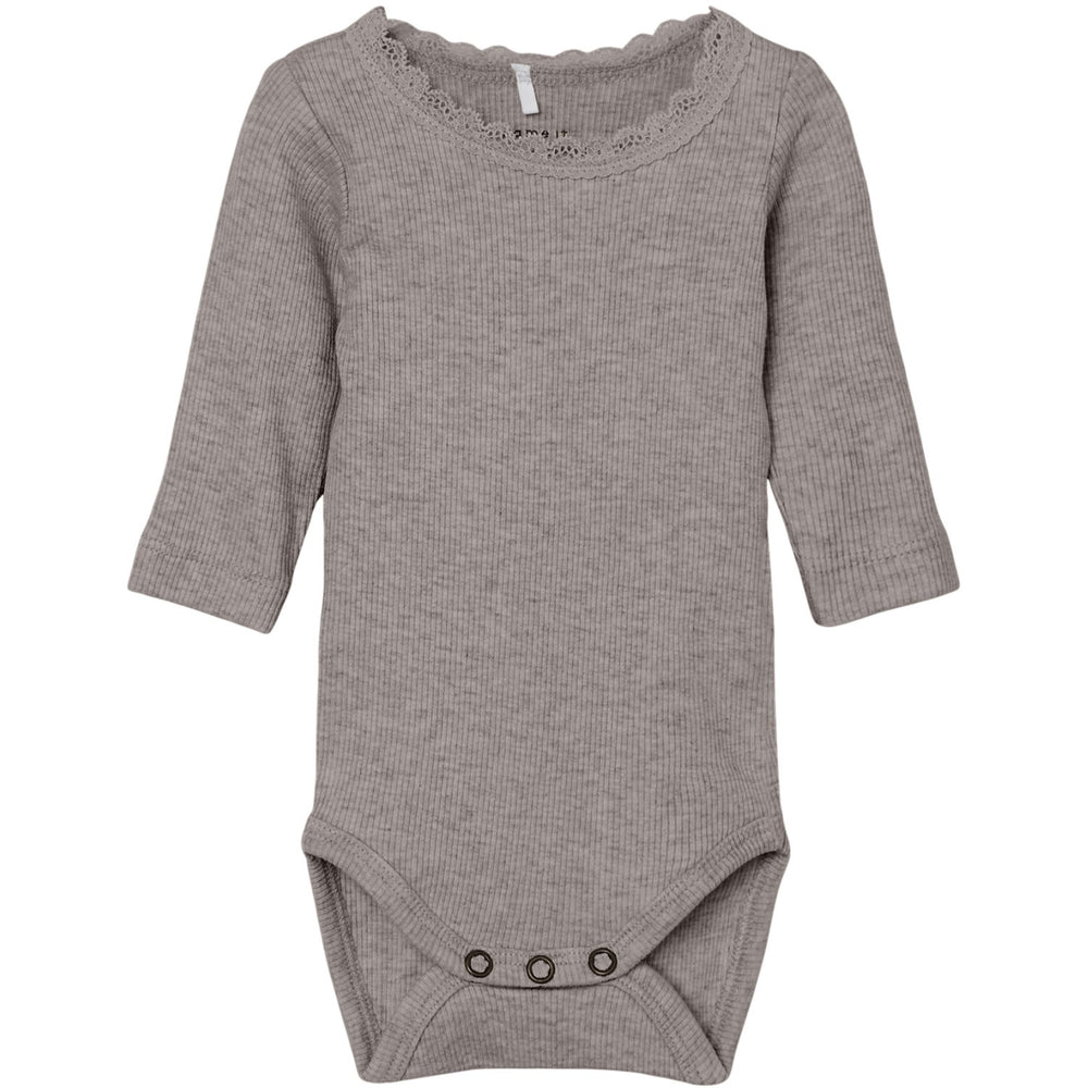 Discover the charm of our Name It Satellite Melange Nbfkab Ls Body Noos bodysuit, perfect for any season. Crafted with a cozy round neck and long sleeves, this piece ensures your child is comfortable and stylish. Featuring press stud fastenings for easy dressing and delicate lace details for a touch of elegance. Available in a versatile melange color. Remember to keep this garment away from fire.