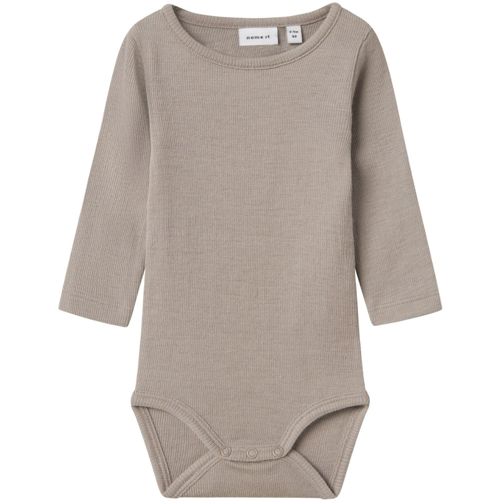 Introduce your little one to the cozy embrace of our Name It Satellite Nbmwossa Wo/Si Rib Ls Body bodysuit. Crafted from soft, elastic rib-knit wool, this piece offers a snug yet comfortable fit with a classic striped pattern that adds a timeless charm. It features a round neck, long sleeves, and practical press stud fastenings in the crotch for easy dressing, available up to size 86. Perfect for all-year-round comfort, this bodysuit combines durability with an adorable style, ensuring your child stays warm and fashionable. Ideal for daily wear, its ease of care makes it a practical addition to any child's wardrobe.