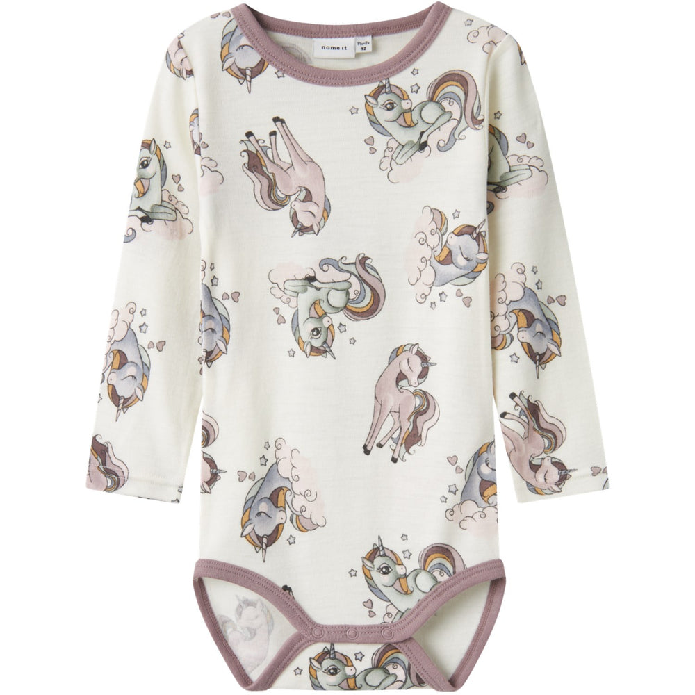 Introduce your little one to the cozy comfort of the Name It Snow White AOP Willitus Wool Body. Crafted from naturally soft and fluffy wool, this bodysuit is perfect for any season, providing warmth in the cold and breathability on warmer days. Featuring a charming all-over print, long sleeves, and convenient press stud fastening, this piece blends style with functionality. Its wool material not only manages moisture but maintains insulation even when damp, ensuring your child's comfort is never compromised. Ideal for both everyday wear and special occasions, this bodysuit promises easy care and lasting durability, making it a must-have in your child’s wardrobe. Materials: 100% Merino wool Materials and care: Max shrinkage 8%. Only use silk or wool detergent Washing instructions: Maximum Washing Temperature 30°C - Gentle Process