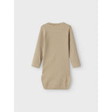 Discover the charm of our Name It Summer Sand Osole Body, a bodysuit that blends style with comfort. Crafted from rib knit, featuring a vertical striped pattern, this bodysuit ensures a snug fit and easy movement. Classic in design with a round neck, long sleeves, and secure press stud fastenings, it's ideal for year-round wear. Not only is it stylish and comfortable, but its durable fabric also simplifies care routines for bustling parents. Safety comes first—keep away from fire for utmost security. Perfect for both play and downtime, it promises to keep your little one comfortable and fashionable in any setting.