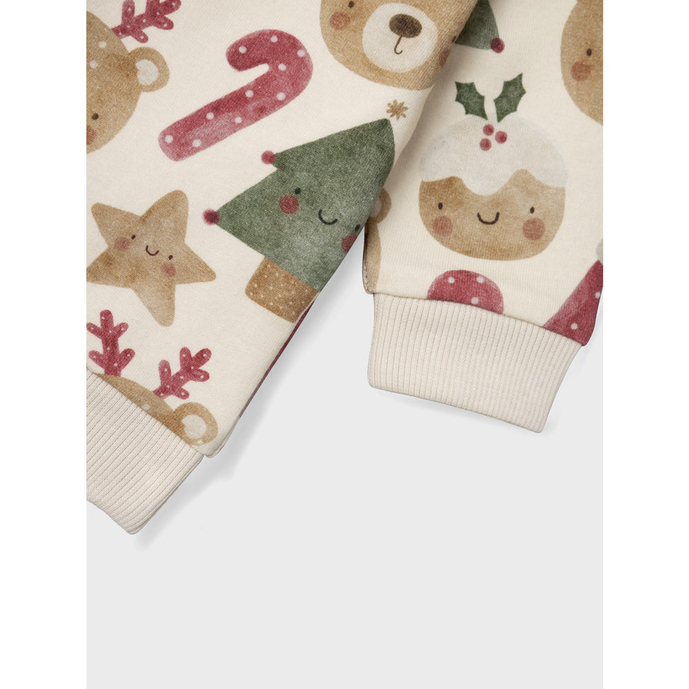 Introducing the delightful 'Name It Summer Sand Rahus Sweatshirt,' perfect for adding a sprinkle of festive cheer to your child's wardrobe. Crafted from brushed sweat fabric, this sweatshirt ensures a soft, comforting touch against the skin, ideal for the sensitive skin of children. The round neck and long sleeves offer a classic look, while the press stud fastening on the shoulder allows for easy dressing.