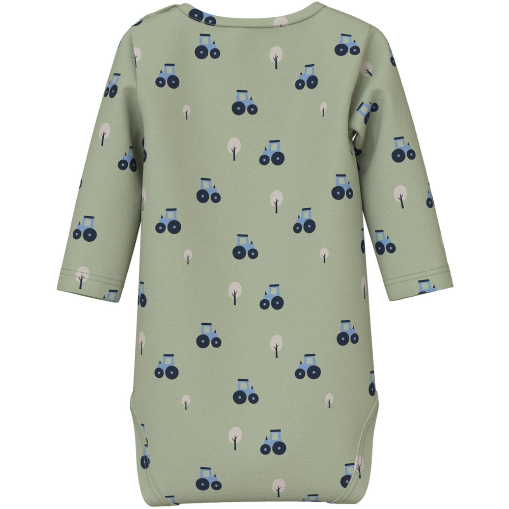 Dress your little one in the Style Name It Swamp Tractor Nbmvroels Ls Body Box bodysuit, ideal for everyday comfort and style. Crafted from soft, stretchy jersey material, it ensures ample freedom of movement and a snug feel. Featuring a classic O-neck and secure press stud fastenings, this charming piece comes with long sleeves perfect for cooler days. The playful tractor design on reliable fabric combines fun and functionality, making it a wardrobe staple for your child. Bonus point: easy-care instructions support a busy parent's lifestyle, making this both a delightful and practical choice for your youngster's adventures. Materials: 95% Organic Cotton, 5% Elastane Materials and care: Wash with similar colors. Wash and iron inside out Washing instructions: Maximum Washing Temperature 40°C - Normal Process Extra: The main material in this product contains a minimum of 50% organic cotton. Organic cotton is grown without the use of harmful chemicals. Organic cotton farming protects natural resources and biodiversity.