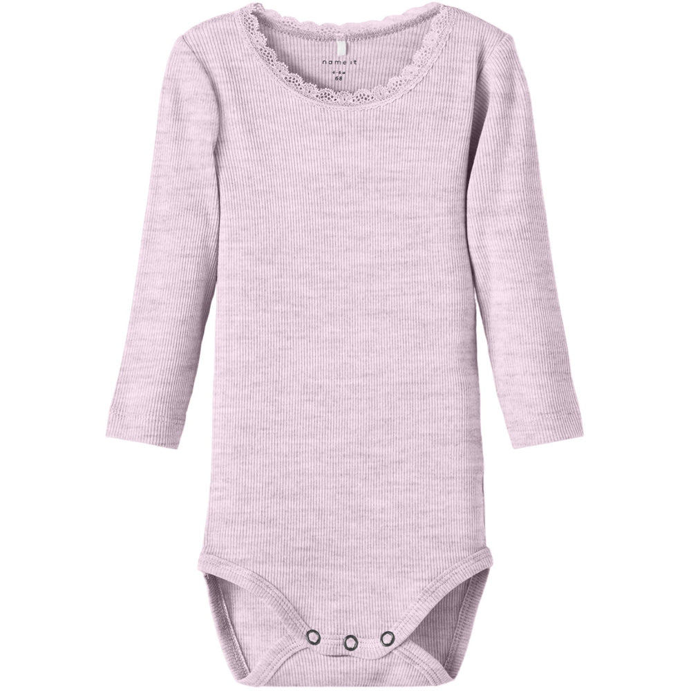 Discover the 'Name It Sweet Dreams Melange Nbfkab Ls Body Noos,' a cozy and stylish bodysuit perfect for your little one. Made with soft fabric, this bodysuit features a classic round neck and long sleeves, adorned with charming lace details. Its melange color and pattern add a touch of elegance, while the press stud fastening ensures easy dressing. The comfortable fit provides freedom for movement, ideal for any season. Plus, it's easy to care for, making it a practical addition to your child's wardrobe. Always remember to keep this garment away from fire for safety. Closure: Press stud fastening Materials: 57% Organic Cotton, 38% Modal, 5% Elastane Materials and care: Wash with similar colors Washing instructions: Maximum Washing Temperature 40°C - Normal Process Extra: The main material in this product contains a minimum of 50% organic cotton. Organic cotton is grown without the use of harmful chemicals. Organic cotton farming protects natural resources and biodiversity
