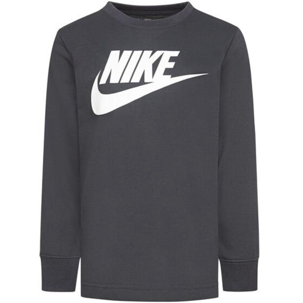 Introduce your little one to the NIKE Anthracite Futura LS Tee, crafted for comfort and style. This long-sleeve top, featuring a bold Nike logo, combines striking design with practical wearability. Its anthracite color and casual design make it a versatile piece for any child's wardrobe. The tee is easy to care for and made with materials that ensure durability and comfort, perfect for both playtime and relaxing. Ideal for parents looking for a blend of style and functionality in children's clothing. Materials: 100% Polyester