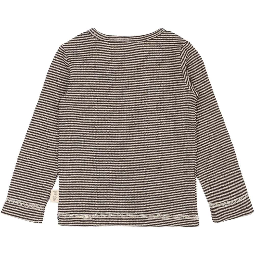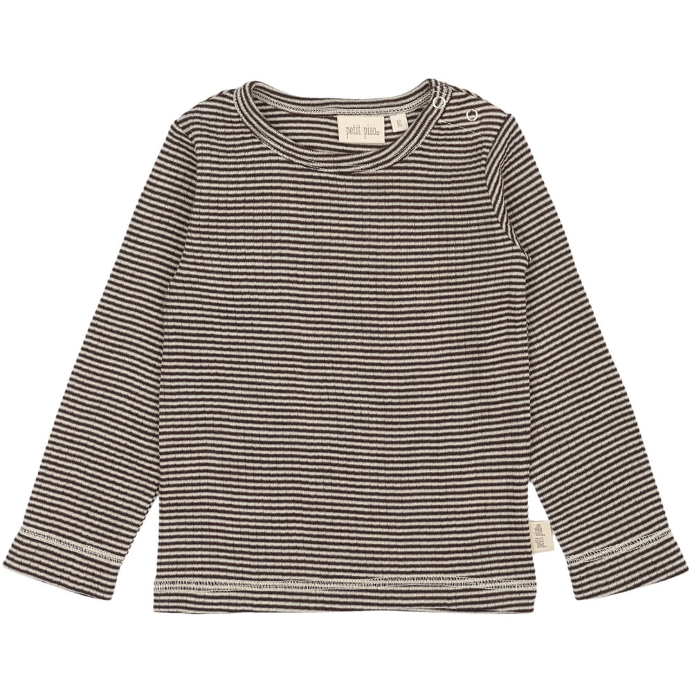 Petit Piao Coffee Bean/Dark Off White PPDante T-Shirt L/S Meriono Wool Striped