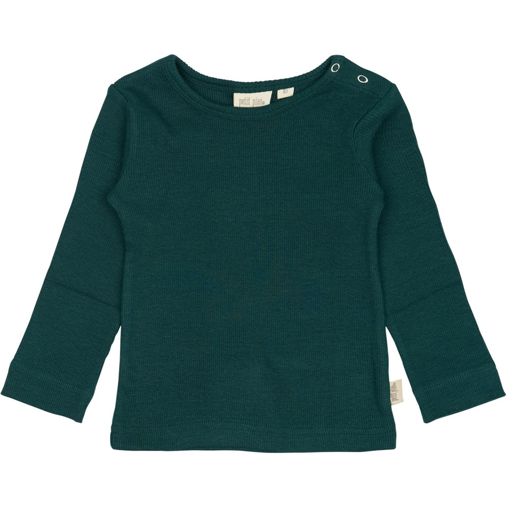 Keep your little one cozy and stylish with the Petit Piao Dark Sea T-shirt. This long-sleeved tee features a classic ribbed design and a push button shoulder seam in sizes 74-92 for easy dressing. Crafted from a soft, stretchable modal fabric, it ensures flexibility and comfort during play. Proudly made in India, it’s perfect for everyday wear.