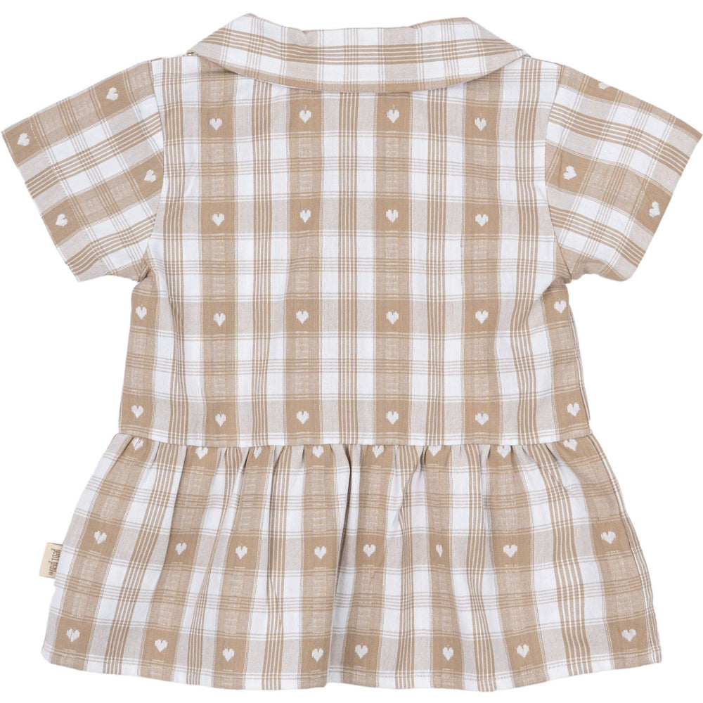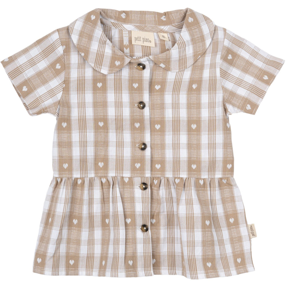 Let your little ray of sunshine in this charming short-sleeved shirt from Petit Piao! The shirt pampers with a heartwarming check pattern adorned with sweet hearts. The round collar adds a touch of cuteness, while the fine wrinkles at the waist give a playful look. With practical buttons on the front, this shirt is both stylish and easy to put on. Perfect for a day filled with adventure! Made with care in India.
