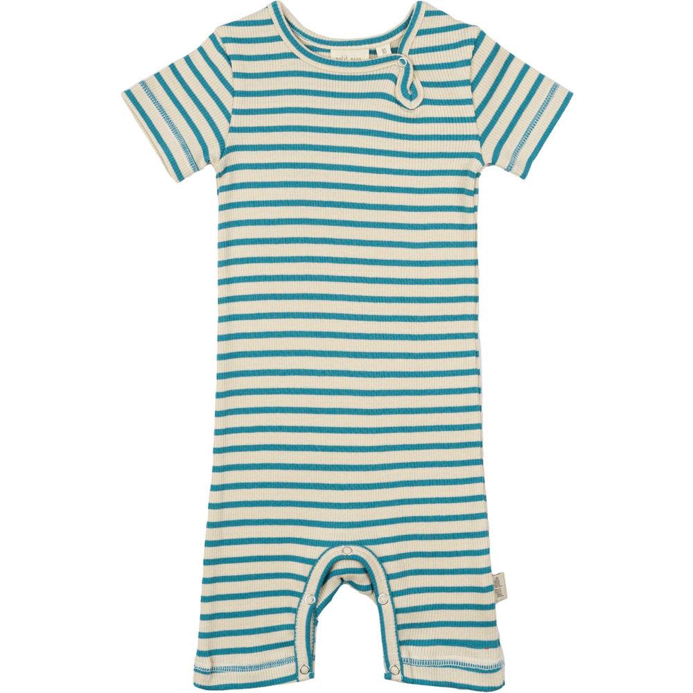 Petit Piao Turquise /Dark Off White Summer Romper S/S Modal Striped