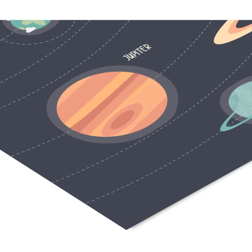 Perfect as a thoughtful gift for new parents or as a creative accent in your child's nursery, this poster not only decorates their space but also sparks an interest in science and the cosmos. Watch as your child’s room transforms into a fun, educational hub where little minds grow big ideas amidst a universe of vibrant, cheerful illustrations. Materials: Paper Measurements: A3