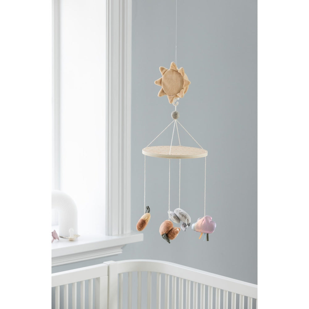 Delight your little one with the Sebra Woodland Baby Musical Mirror Mobile, a charming addition to any nursery. Crafted in Denmark with an emphasis on quality and functionality, this mobile features four enchanting Woodland figures that rotate gently to a soothing melody. As these figures dance, a central mirror captures your baby’s attention, allowing them to discover their own reflection. The musical aspect is ingeniously mechanical, operating without batteries—simply twist the sun-shaped knob to bring the melody to life. Each element, from the reflective mirror to the colorful, moving figures, is designed to stimulate your child’s senses, foster curiosity, and enhance attention spans. This mobile is not only easy to use but also promotes peaceful sleep and calming entertainment, making it an indispensable part of your child’s bedtime or naptime routine. Perfectly sized for easy portability and storage, this mobile is an ideal educational and comforting toy for infants, promising both safety and an engaging, interactive experience.