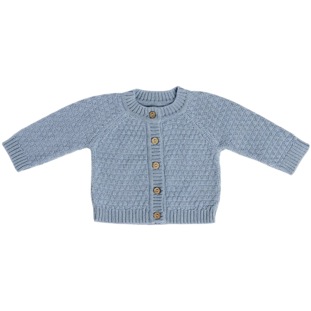 Wrap your little one in the cozy warmth of the Smallstuff Blue Cardigan, expertly crafted from 100% merino wool for unparalleled softness. This charming square knit design is accentuated with natural wooden buttons and comes in a soothing blue shade that is easy to mix and match. Available in four double sizes to grow with your child, this cardigan ensures a snug and comfortable fit. It's easy to care for with hand washing in wool detergent, making it both practical and stylish. Certified by STANDARD 100 by OEKO-TEX®, you can be confident in its safety and quality. Ideal for chilly days or layering over outfits, this cardigan combines function with adorable style, keeping your little explorer snug and fashionable.