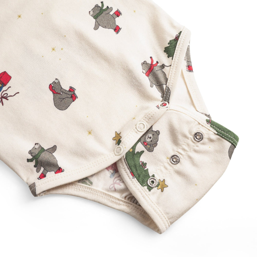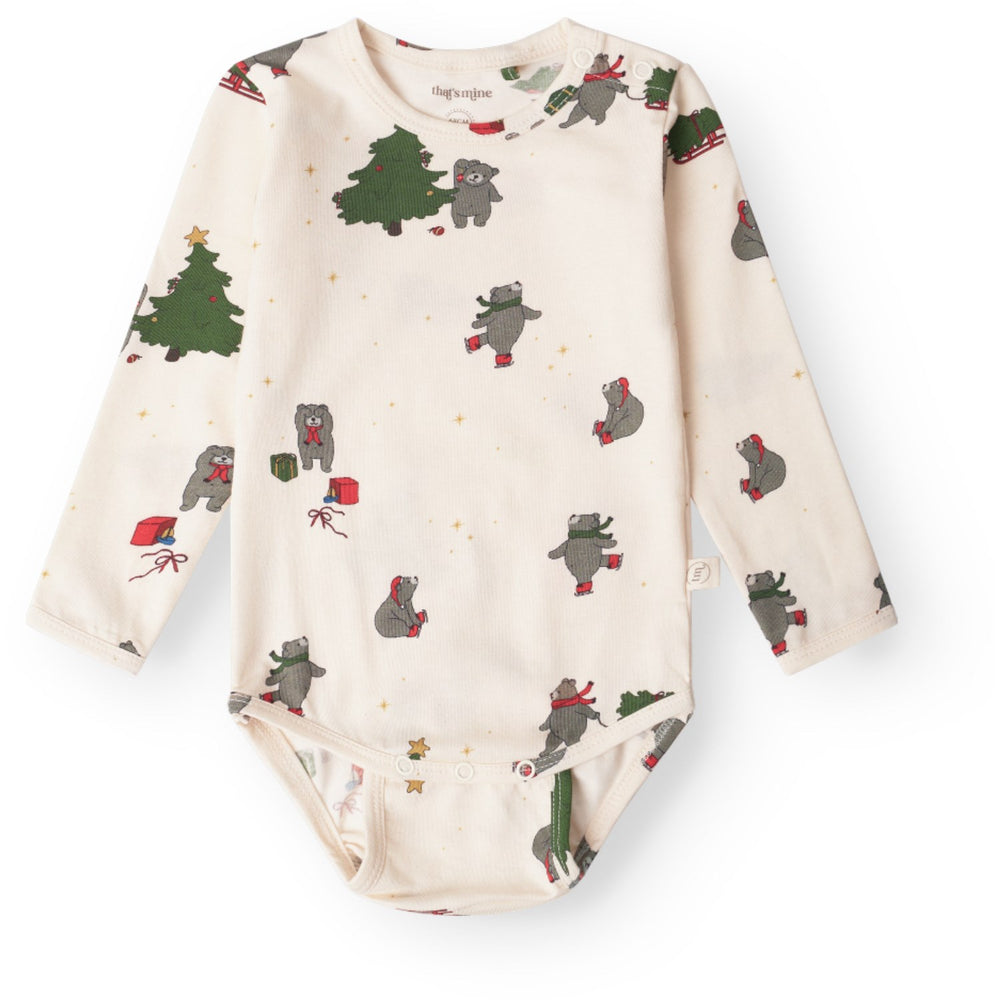 Dress your little one in the cozy elegance of the That's Mine Christmas Shopping Ellis Bodystocking. This wonderfully soft bodysuit is crafted from a blend of the finest cotton and modal, ensuring superior comfort. Featuring adjustable metal buttons for an ideal fit as they grow, it comes in a selection of charming prints. Perfect for festive seasons or comfortable daily wear, this bodysuit combines style, functionality, and ease of care. Materials: 48% Organic cotton, 47% Modal, 5% Elastane Washing instructions: Wash warm (max 40°C), Iron medium (max 150°C), Tumble dry on low heat, Do not bleach, Do not dry clean