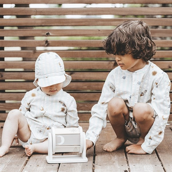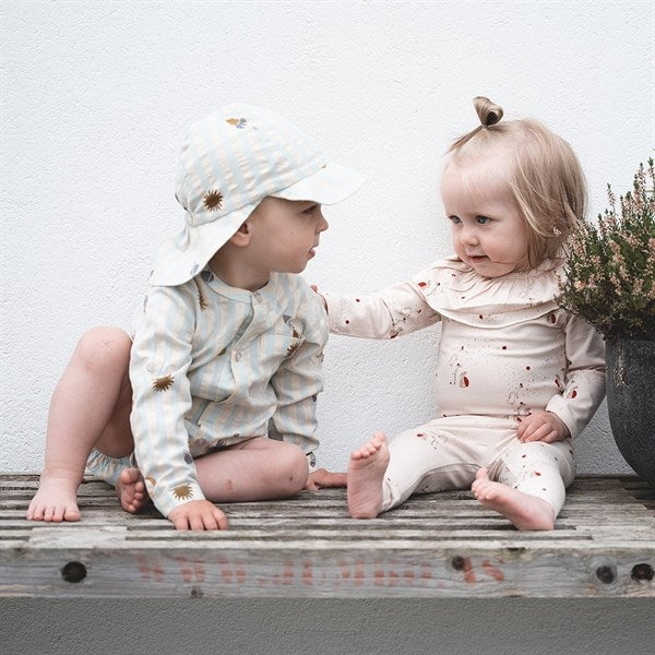 Introducing the "That's Mine Espace Cane Baby Sun Hat" - a must-have for your little one's outdoor adventures! Crafted from breathable materials, this stylish hat features a charming cane pattern in soothing colors, ensuring your child looks adorable while staying protected. It's designed with a snug fit for comfort and is easy to care for. Perfect for sunny days at the park or beach!