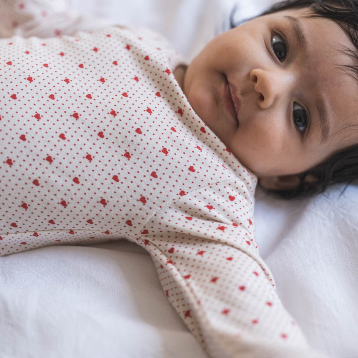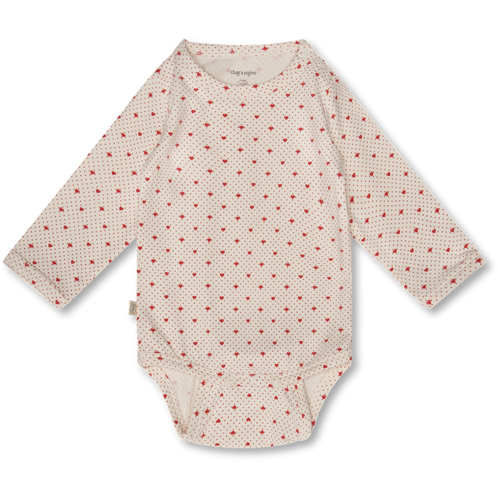 Introduce your little one to the world of adorable fashion with the "That's Mine Lots of Love Red Ellis Bodystocking." Crafted from a luxurious blend of the softest cotton and modal, this bodystocking promises unparalleled comfort and a gentle touch on your child's sensitive skin. Featuring a delightful red hue complemented by a variety of beautiful prints, this piece captures the essence of playful and stylish children's wear.
