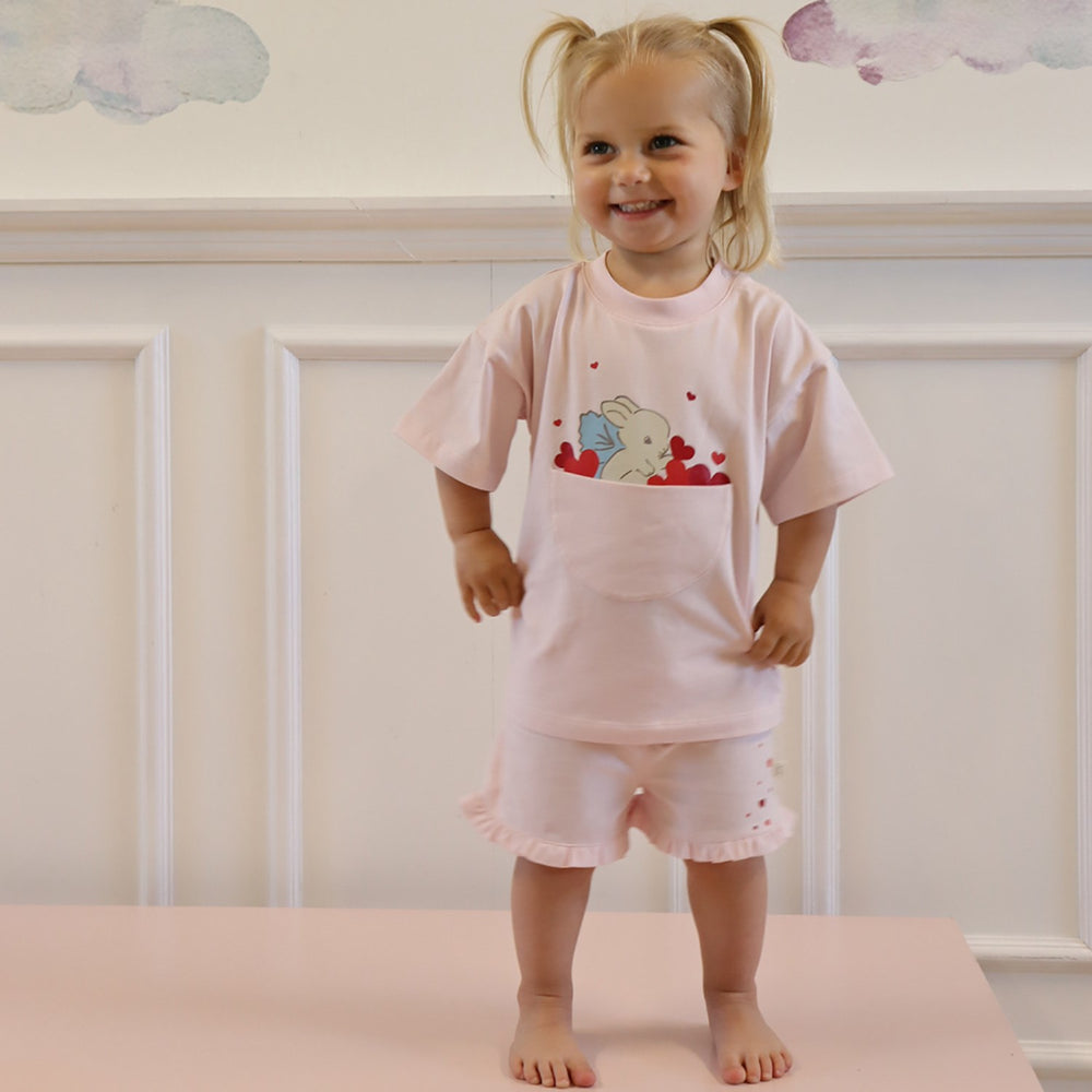 Dress your little one in comfort and style with the That's Mine X Luksusbaby Soft Pink Lara Set, featuring a cozy T-shirt with a large pocket and delightful print, paired with matching shorts. This set not only offers a stylish coordinated look but ensures wearability and ease of care, perfect for playful summer days. Ideal for toddlers and young children, this outfit comes in soft pink, blending functionality with a fun, fresh design. Materials: 95% Organic cotton / 5% Elastan Washing instructions: Wash warm (max 40°C), Do not iron, Tumble dry on low heat, Do not dry clean, Do not dry clean
