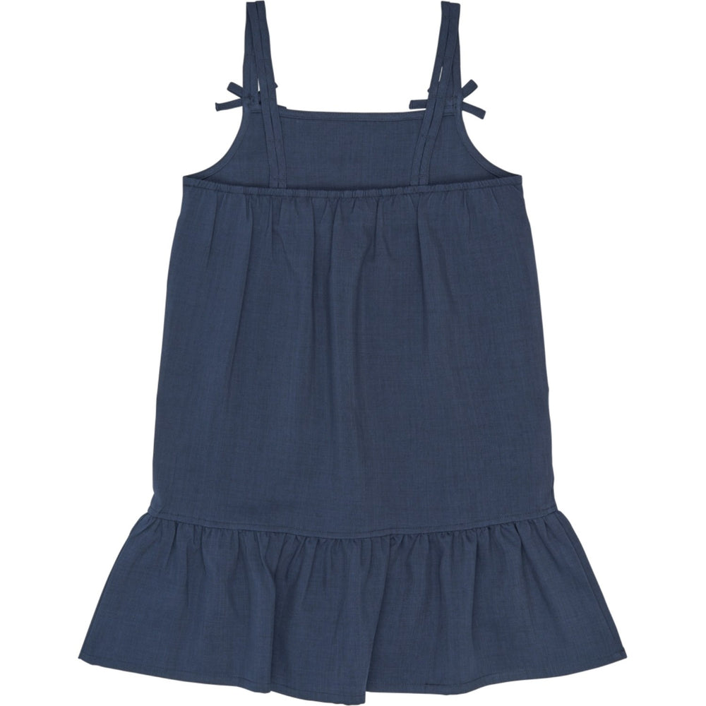 The dress features charming bow details on the straps, adding a touch of girlish charm and subtle sophistication. Its deep-navy hue enhances its versatility, making it simple to coordinate with various accessories for either a casual look or more festive occasions. This strap dress is not only easy to slip on but also promises to keep your little one cool and comfortable during those warm, sunny days. Easy to care for, it requires minimal fuss to maintain its vibrant look and quality. Whether it’s a day at the park or a special family gathering, this dress is designed to ensure your child looks her best while staying comfortable and happy. Materials: 95% Polyester, 5% Elastane