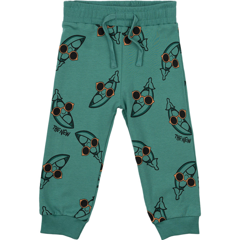 Discover comfort and style with THE NEW Siblings Bottle Green AOP Neo Sweatpants! Designed for the active child, these pants offer a trendy bottle green color with an all-over print. The breathable material makes them perfect for play, while their durability promises easy care. Ideal for any young fashion enthusiast!