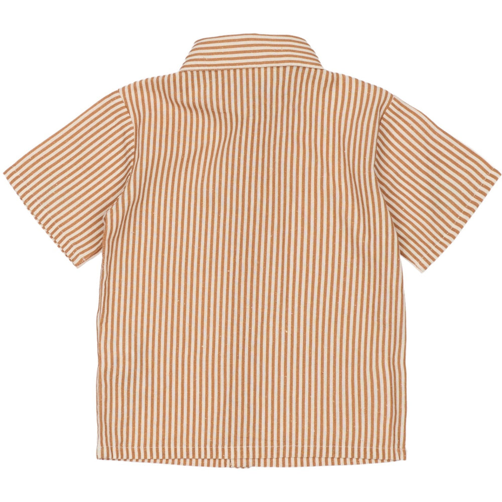 Introducing the latest addition to our children's fashion line, THE NEW Siblings Indian Tan Striped Opal Shirt, perfect for adding a touch of style and comfort to your child's wardrobe. Expertly crafted from high-quality materials, this shirt ensures durability and easy care, ideal for the active lives of young ones. The charming striped pattern in a soothing Indian tan and opal hue brings a playful yet sophisticated vibe, making it a versatile choice for various occasions.