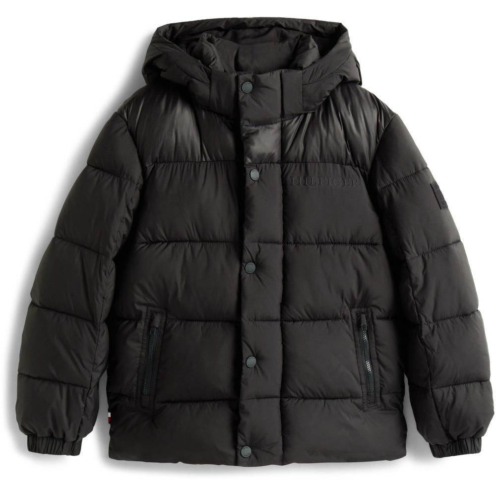 Introducing the Tommy Hilfiger Black Matt and Shine Embossed Jacket - a stylish must-have for your child's wardrobe. Crafted from durable materials, this jacket features a unique matte and shiny embossed design that catches the eye. Available in various sizes to ensure a comfortable fit, it promises easy care and high wearability. Perfect for both casual outings and more formal events, this jacket combines functionality with fashion, making it an ideal choice for any young style enthusiast. Materials: Recycled Polyester (100%)
