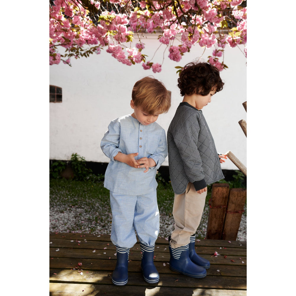 시원한 Wheat Ink Stripe Thermo Jacket Sylvester로 계절의 변화를 헤쳐 나가세요! 스트라이프가 있는 이 매력적인 보온 재킷은 스타일리시하게 따뜻하게 지내고 싶은 활동적인 어린이에게 적합합니다. 실용적인 골지 칼라, 커프스, 오픈 포켓이 장착되어 있어 작은 손으로도 모험의 작은 보물을 숨길 수 있습니다. 보온 재킷은 100% 재활용 폴리에스터로 만들어졌으며 발수 마감 처리되어 습한 날씨에 플레이하기에 이상적입니다. 라이트 블루 컬러와 산뜻한 스트라이프 패턴은 평상시의 코데에 조금의 즐거움을 더해 줄 것입니다!